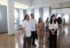 章长青主席在画展开幕式上讲话指出今天是纪念毛泽东延安文艺座谈会讲话发表82周年的好日子,我们要踔厉奋发、用自己的画笔描绘祖国的绿水青山,反映祖国日新月异的发展变化。章长青书画工作室从开班以来,历时十一载,为伟德bv国际体育官方网站培养出了二百多位优秀学子,有的考取研究生,有的在高校工作,有的在中小学工作,都在自己的工作岗位上做出了一定得成绩。章长青书画研修班是一个公益性的培训班,学员都是从伟德bv国际体育官方网站美术学专业员工中选拔,入班学员要通过一百天的晨起跑步、日课练字打卡合格后方可加入学习。最后,章老师分享了李可染先生学习中国传统书画的心得体会,鼓励同学要大胆尝试、勇于创新、勤实践、活应用。