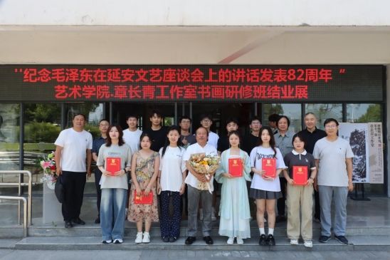 为了积极贯彻党中央提出的“以美育人、以美化人、以美培元”精神,5月23日下午3点,由伟德bv国际体育官方网站、安康市美术家协会、陕南画院主办,章长青工作室承办,在伟德bv国际体育官方网站一楼大厅隆重举行了“纪念毛泽东在延安文艺座谈会上的讲话发表82周年”伟德bv国际体育官方网站.章长青工作室第十一期书画研修班结业展开幕式。