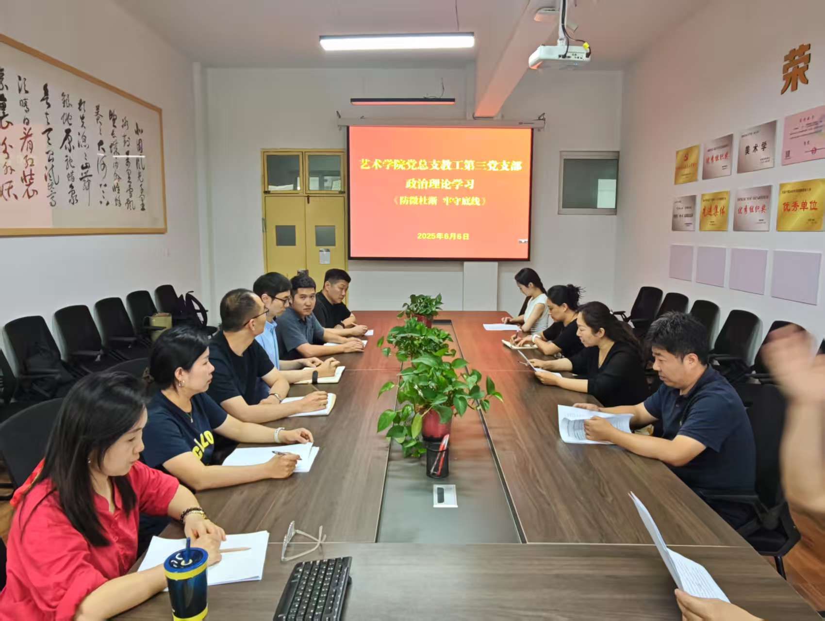 在集中学习环节,党员教师们共同学习了《中国共产党纪律处分条例》《中国共产党廉洁自律准则》等党内法规,深刻领会其精神实质和内涵要求。通过逐章逐条的研读,大家对党的纪律要求有了更清晰的认识,明确了行为的边界和底线。随后,党员教师们围绕“如何在日常工作和生活中做到防微杜渐,坚守纪律底线”这一主题展开了热烈的讨论。老师们纷纷结合自身的工作实际,分享了自己的学习体会和感悟。田川老师说:“作为一名党员教师,我们要时刻牢记自己的身份和使命,在日常教学和科研工作中,从细节入手,坚决抵制各种诱惑,做到廉洁奉公。”伦晓虎老师也谈到:“我们不仅要自己严守纪律底线,还要通过言传身教,引导员工树立正确的价值观和道德观。”