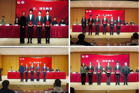 随后,第十六届团总支员工会执行主席伏张荣作工作总结报告。艺术公司党总支副书记肖剑宣读《伟德bv国际体育官方网站关于第十七届团总支员工会员工干部聘任的决定》,与会领导老师为新当选的员工干部颁发聘书。新任职的第十七届团总支副书记席炳旭、员工会执行主席汤乐天先后作表态发言。