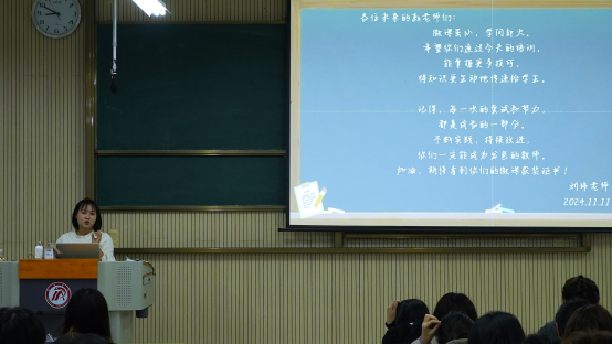 刘玮老师首先详细阐释了微课的定义,它以微型教学视频为载体,围绕学科知识点或教学环节设计,是一种情景化、支持多种学习方式的在线视频课程资源。微课具有时间短(视频长度<10分钟)、讲解设计制作精良、主题小且内容令人印象深刻等特点。同时,刘老师还介绍了微课的多种类型,包括按制作方法划分的PPT录屏微课、动画微课、真人出镜+PPT录屏微课等,并讲解了师范生微课大赛评审标准,让同学们对微课制作的要求有了清晰的认识。此外,刘老师还向同学们推荐了全国高校微课教学比赛官网、中国微课网等微课网站,为同学们提供了丰富的学习资源。在微课制作流程方面,刘老师从教学分析、教学设计、微课开发到实施与评价,进行了细致的讲解,并结合实例点评,加深同学们的理解。培训过程中,刘老师特别强调了一些制作要点,如与专业课老师商定选题、避免把讲课稿写成说课稿、借助AI润色语言、注意录制细节、遵循PPT制作的CRAP原则以及视频剪辑的要点等。