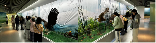 活动中,专业讲解员以生动详实的讲述,带领员工系统梳理秦巴山地的地理特征与核心生态价值,让大家对这片珍稀野生动物的“天然栖息地”建立起深刻认知。随后,员工分组走进“秦岭四宝”(大熊猫、金丝猴、羚牛、朱鹮)专题展区,透过栩栩如生的标本、结合细致的物种讲解,深入了解“秦岭四宝”的生存习性、分布范围及保护进展,直观感受珍稀动物与自然环境的共生关联,深切体会保护工作的重要意义。在互动讨论环节,师生围绕秦巴山地自然保护区建设价值展开热烈交流,从不同维度探讨野生动物保护路径,明晰新时代青年在生态文明建设中的责任担当。
