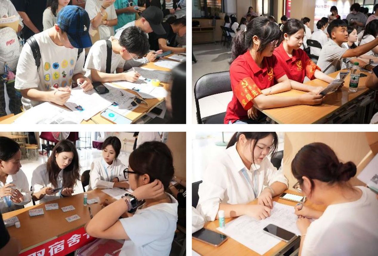 员工干部充分发挥“服务枢纽”作用,在迎新办理点有序开展工作。他们一边为新生分发宿舍卡,清晰说明使用方法;一边指导新生填写个人入学登记表,耐心核对每一项内容,确保信息准确无误,用高效的服务助力迎新流程顺畅推进,展现出伟德bv国际体育官方网站学子的责任与担当。