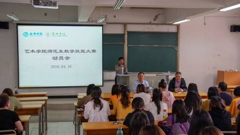 为积极配合校团委、教务处做好伟德bv国际体育官方网站第三届师范生教学技能大赛工作,提升公司师范生公司产品技能,培养具有高尚的师德、先进的教育理念、扎实教学技能的优秀教师后备力量。公司于4月18日早上10点在2202教室组织召开伟德bv国际体育官方网站师范生教学技能大赛动员会,安康中学高级教师何涛受邀参加了本次活动。副经理孙海洋、学工办主任刘泽桢、2016级美术学全体员工参加会议,本次会议由团总支书记薛涛主持。