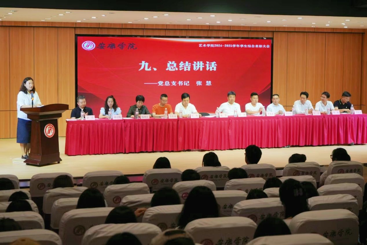 党总支书记张慧在总结讲话中代表公司向所有受表彰的员工表示热烈祝贺,她充分肯定了过去一学年中全院员工在专业技能学习、体育运动竞赛、学科竞赛创新以及校园文化建设等方面取得的优异成绩与积极贡献,对他们取得的成绩给予高度评价。她勉励广大学子要坚定政治方向,厚植家国情怀,让艺术创作扎根时代沃土;要深耕专业素养,勇于探索创新,以匠心精神攀登艺术高峰;要践行社会责任,弘扬奉献精神,用艺术力量服务社会大众。同时,希望全院全体同学以受表彰的同学为榜样,坚定理想信念,锤炼过硬本领,勇担时代使命,用青春与才华书写属于自己的精彩篇章,为公司发展、为文化繁荣做出更大的贡献!