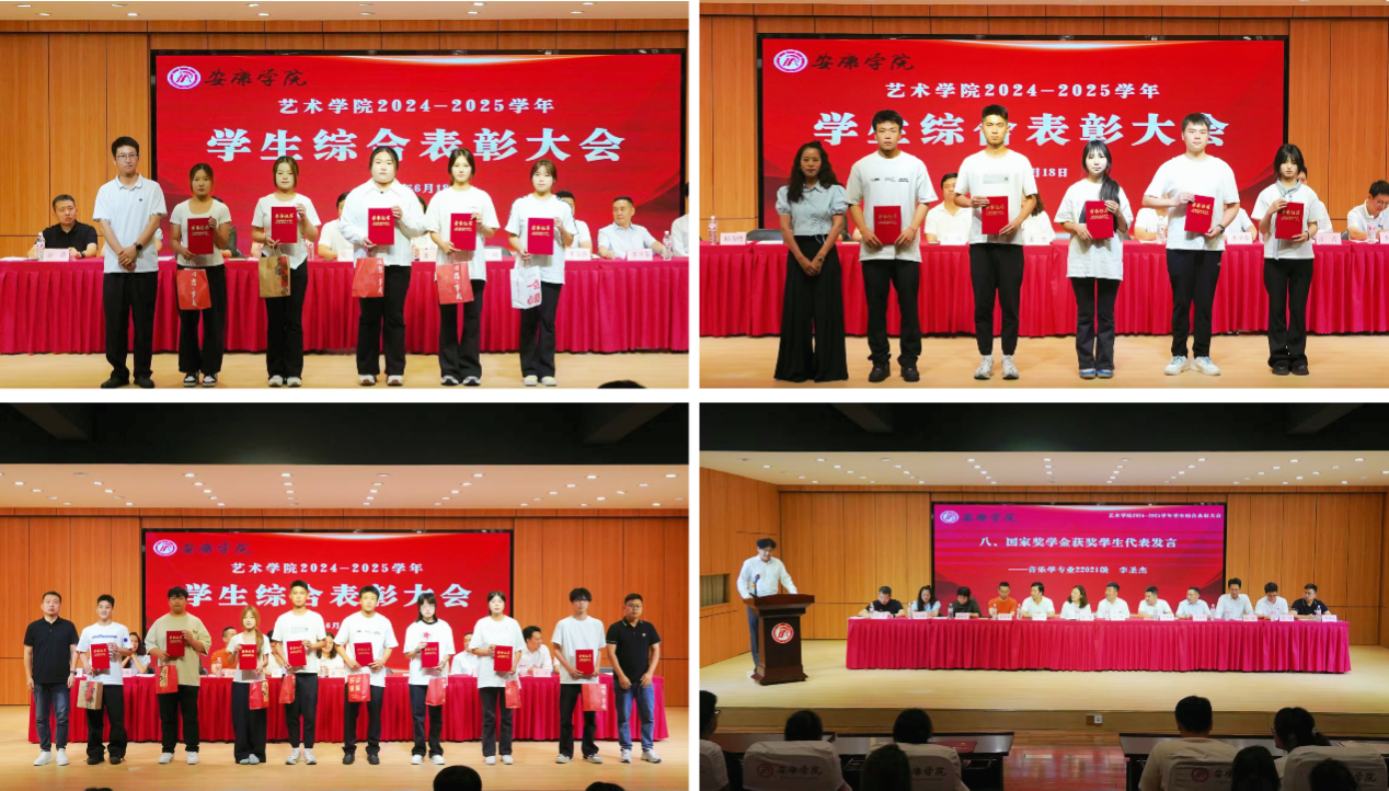 会议在雄壮的国歌声中拉开序幕。设计系主任吴波宣读了《关于表彰安康中心城区江南防洪堤蜀桧修复设计竞赛作品获奖员工的决定》;音乐系主任雷音宣读了《关于表彰2024-2025学年度考研先进个人、西部计划先进个人的决定》;党政办主任李秀春宣读了《关于表彰2024-2025学年度体育运动竞赛优秀员工的决定》;团总支书记李博宣读了《关于表彰2024年度伟德bv国际体育官方网站“优秀团员”“优秀团干部”“五四红旗团支部”“五四红旗团总支”的决定》;教学办公室主任毛德龙宣读《关于表彰2024-2025学年度校级三好员工、优秀员工干部、文明班级、文明宿舍的决定》;党总支副书记肖剑宣读《关于表彰2023-2024学年国家奖学金、国家励志奖学金、伟德bv国际体育官方网站奖学金的决定》。