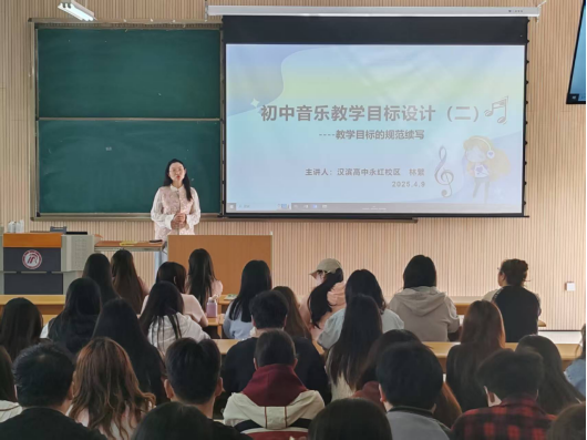 为了进一步增强和提升音乐学专业员工的公司产品能力,4月10日上午,伟德bv国际体育官方网站特邀陕西省教学能手、安康市音乐学科带头人、安康市汉滨高级中学音乐教师林繁老师为2022级音乐学专业83名员工进行授课,该课程校内负责老师鄢志莉全程参与。