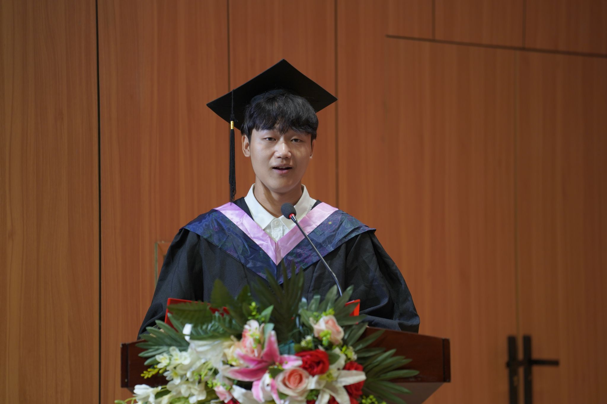 教师代表任川博士希望同学们在未来的日子里能永葆艺术基因,以不甘平庸的雄心带来的创造之意志、超越之精神,奋力书写精彩的人生篇章。2020级音乐学专业张思凡代表毕业生对公司及老师的培养表示感谢,将不辜负老师们的殷切希望和深情嘱托。做新时代有志青年、逐梦而行,奋力书写为中国式现代化挺膺担当的青春篇章。