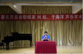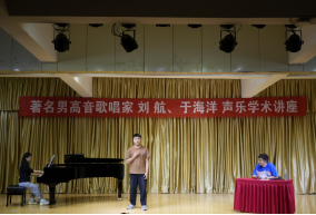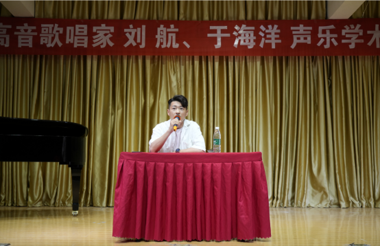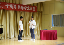上半场讲座由著名青年男高音歌唱家,沈阳音乐公司硕士研究生导师、声乐歌剧系副主任、黑龙江省歌舞剧院歌剧团艺术总监、声乐指导刘航教授作为主讲嘉宾,刘老师以如何用科学的方法歌唱为主题做讲座,刘老师讲座语言生动幽默、富余感染力,他从发声方法、共鸣腔体、具体技术运用和“声乐专业词汇”解析等多个角度讲授声乐演唱的具体方法,并为公司青年教师与声乐专业同学做现场指导。下半场讲座由中国歌剧舞剧院青年男高音歌唱家、中国音乐家协会会员、中国音乐公司特聘教师、第11届中国声乐金钟奖金奖获得者于海洋老师作为主讲嘉宾,于老师结合科学的方法歌唱解答了多名同学提出的问题,结合《念奴娇.赤壁怀古》、《思儿》等中国艺术歌曲、歌剧选段现场指导多名音乐学专业同学进行演唱。