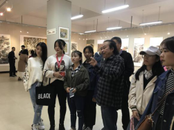 同学们到展厅参观展览后,就各位艺术家、公司教师的作品展开了观摩与探讨,各位艺术家和公司教师就整个展厅作品向同学们进行了讲解和答疑。
