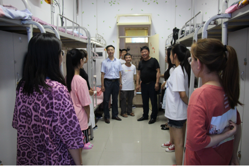 9月2日下午,公司党总支书记王辉老师,经理杨哲老师,学工办主任刘泽桢老师,辅导员魏麟老师,薛涛老师以及随行的员工会成员对18级新生宿舍进行了看望了2018级新生。 在新生宿舍里,新生们以朝气蓬勃的面貌和热烈的掌声欢迎公司领导和老师的到来,师生之间就生活中的问题进行交流。