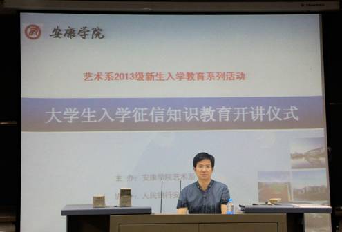 2013年9月25日晚7:00,艺术系2013级392名新同学满怀激情地欢聚在伟德bv国际体育官方网站江北校区1201教室,参加我系新生入学教育系列活动——老员工入学征信知识教育开讲仪式。中国人民银行安康市中心支行行长王凯俊,人民银行西安分行征信管理处处长章红,国家开发银行陕西分行郭瑞副处长参加了开讲仪式。仪式由系党总支书记冯丰收主持。