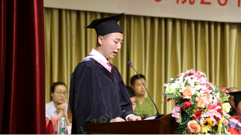 在庄严肃穆的国歌旋律中,毕业典礼拉开了帷幕。伟德bv国际体育官方网站经理杨哲代表全院师生向2018届毕业生发表了热情洋溢的致辞,他对2018届毕业生在校期间的学习、生活所做出的努力和贡献以及表现出来的优秀品质给予了充分地肯定。希望同学们做一个有爱的人做一个爱读书的人做一个具有独立人格有担当的人,做一个善于创造的人。并祝全体毕业生不负所学,前程似锦。