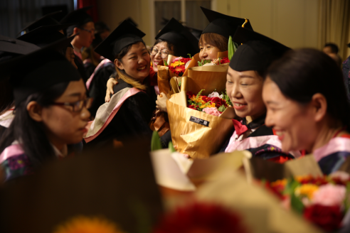 最后,全体起立齐唱校歌,肖老师宣布毕业典礼结束,师生合影留念。