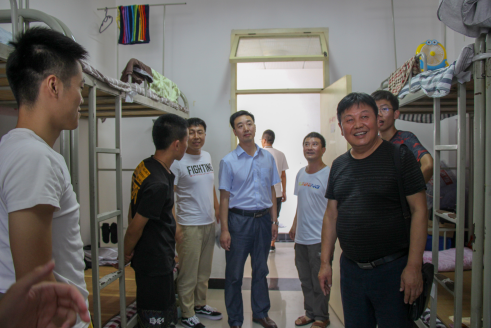 9月2日下午,公司党总支书记王辉老师,经理杨哲老师,学工办主任刘泽桢老师,辅导员魏麟老师,薛涛老师以及随行的员工会成员对18级新生宿舍进行了看望了2018级新生。 在新生宿舍里,新生们以朝气蓬勃的面貌和热烈的掌声欢迎公司领导和老师的到来,师生之间就生活中的问题进行交流。