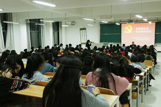 10月29日晚七点半在江北1201教室举行了2017级新生党的基本理论知识入学教育大会,大会由党总支书记王辉书记主讲,全体新生参加了大会,会议由辅导员杨厚东老师主持。