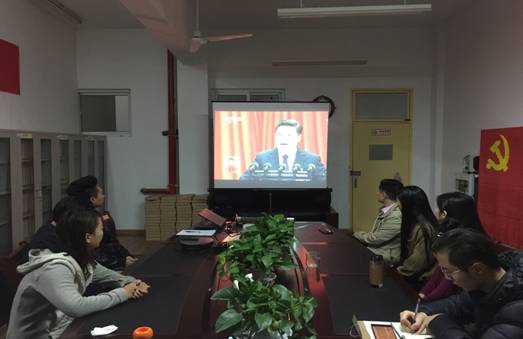 艺术公司党总支组织院领导、总支委员、支部委员、工会分会委员、系主任、全体党员教师、全体行政人员,在江北校区2206室认真聆听了习近平总书记作的大会报告。习近平总书记代表第十八届中央委员会向中国共产党第十九次全国代表大会作了题为《决胜全面建成小康社会 夺取新时代中国特色社会主义伟大胜利》的报告。在习近平总书记长达三个半小时的报告中,我们清楚的认识到,中国共产党第十九次全国代表大会是在全面建成小康社会决胜阶段、中国特色社会主义进入新时代的关键时期召开的一次十分重要的大会。习近平总书记的报告高瞻远瞩、举旗定向,大气磅礴,是中国共产党不忘初心、牢记使命、继续前进的政治宣言,是决胜全面建成小康社会、夺取新时代中国特色社会主义伟大胜利的进军号角,是开启全面建设社会主义现代化强国新征程、实现中华民族伟大复兴中国梦的行动指南,是马克思主义中国化的新飞跃,是民族精神和时代精神之精华,是照亮中华民族伟大复兴前程、指引我们党夺取“四个伟大”新胜利的思想灯塔。