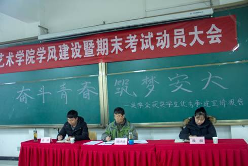 院学工办主任刘泽桢老师做学风建设及期末考试动员讲话。刘老师就学风建设提出三点建议:一是做好自己的学业、职业规划,凡事预则立,不预则废;二是要学会学习,艺术类员工学习要靠“悟”与“练”,要有兴趣、下功夫、使巧劲;三是要建立良好的学习氛围,抓好两个课堂,向第一课堂要效率,积极参加第二课堂,做到“以赛促学”,发挥班团干部带头作用,在同学之间开展比、学、赶、帮、超活动。最后,刘老师就期末考试考风考纪向同学们提出严格要求。刘老师强调公司对考试违纪行为零容忍,他希望全体员工都能够端正考风,严肃考纪,营造文明、诚信考试。