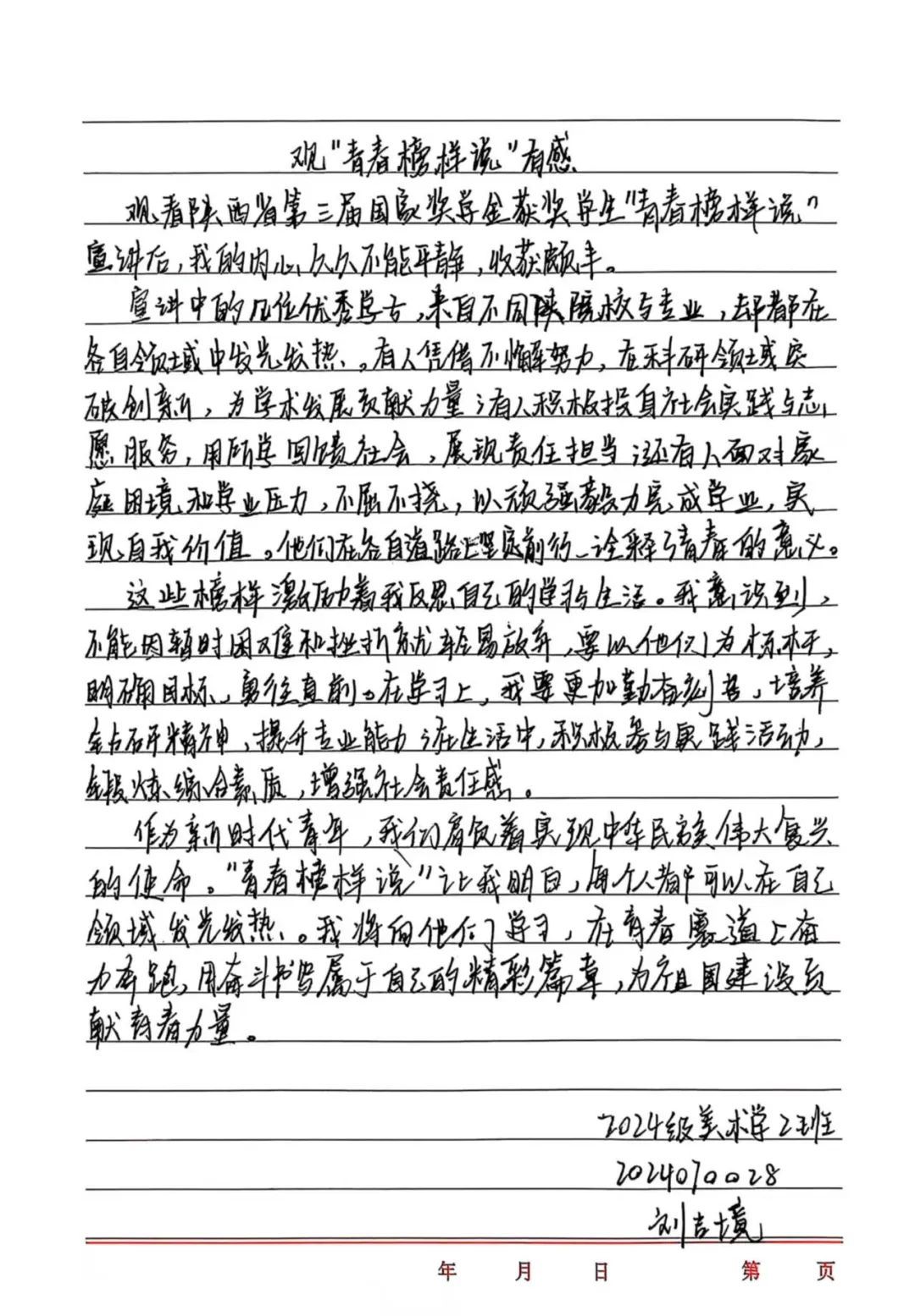 本次宣讲暨资助育人活动营造了崇尚先进、学习榜样的浓厚氛围,是一次生动的思想政治课与实践动员会,也是一次温暖有力的政策宣传和励志教育。未来,伟德bv国际体育官方网站将进一步完善榜样育人机制与多元资助体系,引导广大学子在对标榜样中汲取力量,将感恩之情内化为向上拼搏的实际行动,用手中画笔描绘无愧时代的青春华章。