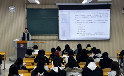班会上,辅导员老师们着重讲解了课程考核与成绩记载、转专业与转学、休学与复学等关键流程,明确了学业预警机制的具体标准,提醒新生重视日常学习,避免出现学业问题。针对奖惩制度,老师们详细解读了各类奖学金评定的条件、评选流程以及“三好员工”、“优秀员工干部”等荣誉的申报要求,同时也对违反校纪校规的处分条款进行了重点说明,通过真实案例剖析,让新生深刻认识到遵守纪律的重要性。