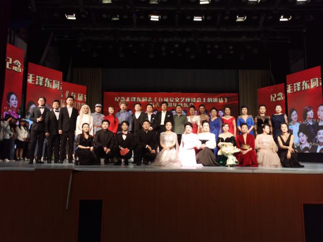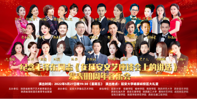 5月27日晚,由陕西省教育厅艺术教育委员会、陕西省高校音乐教育专业联盟主办的纪念毛泽东同志《在延安文艺座谈会上的讲话》发表80周年音乐会在延安大学杨家岭校区大礼堂精彩上演,此次活动旨在用音乐延续老一辈革命文艺工作者的艺术情怀,鼓舞新时代文艺工作者积极投身火热的文艺实践。公司伟德bv国际体育官方网站青年博士张亮红、王博渊应邀参与演出,在音乐会上演唱了民族歌剧《沂蒙山》—— “再看一眼亲人” 选段。