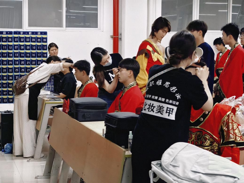 台上一分钟,台下十年功。为了在开幕式上呈现最佳效果,伟德bv国际体育官方网站学子们历经半个多月的辛苦排练。从动作的精准磨合到情感的细腻表达,每一个细节都反复推敲、精益求精。训练过程中,他们克服了诸多困难。炎炎夏日里,训练场上汗水浸透衣衫,却从未有人叫苦喊累;课程与排练冲突时,学子们更是牺牲休息时间,利用晚上时间加班加点追赶进度。带队老师也全程陪伴员工完成训练,随时为有需要的员工提供帮助,师生携手为这场演出全力以赴。