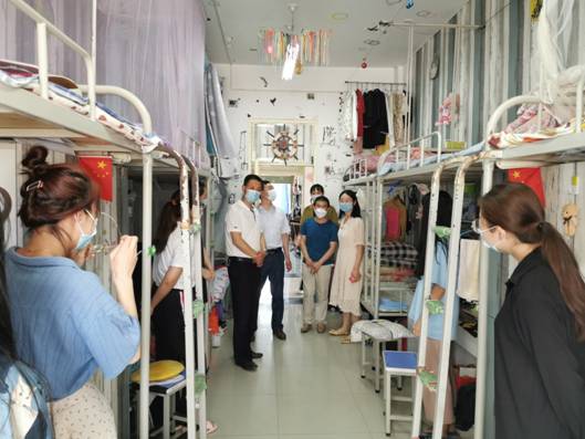 为认真落实公司《关于做好开学期间校园安全检查的通知》要求,确保已返校的毕业生在校园里能有一个安全稳定的学习生活场所。5月3日下午3点,艺术公司党总支书记樊仁杰、经理杨哲、专职组织员刘泽桢带领辅导员艾蕾、薛涛到员工宿舍看望返校毕业生。