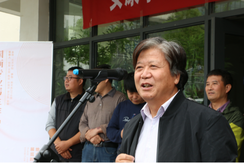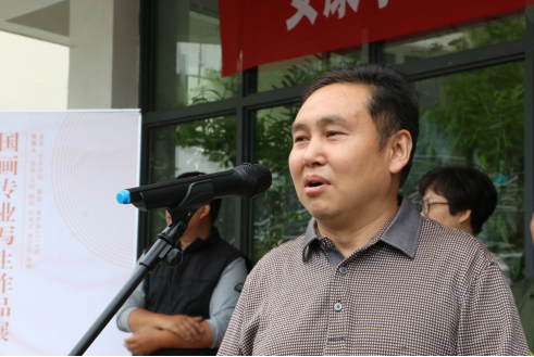 首先党天才教授进行讲话,党老师对本次同学和老师下乡采风画的写生成果表示祝贺,同时对写生实践中存在的问题进行总结,他强调,为了展现员工的学习成果,每一届员工下乡写生的作品都要举办展览,公司员工在这一点做得很好,这样的做法能实现老师们,同学们之间的相互交流,相互学习,另外也是一种汇报。通过展览,同学们互相取长补短,虽然这项活动在公司已经是常态化的,但我们依然要将它延续下去,最后预祝本次展览圆满成功。