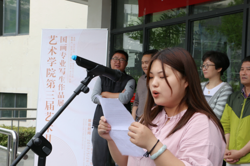 员工代表陆爽同学汇报了写生感受。她说到,本次写生在老师的精心指导下,同学们有效将临摹与写生相结合,速记与慢笔相结合,客观与主观相结合,用心去领悟山水、用情去感染自我,极大锻炼了我们的造型能力、观察能力和对笔墨的表现能力。使我们明白只有走进自然,才能深入的领悟自然,搜尽奇峰也好,手捉造化也好,对生活美的体验就在这样的感受中日复一日地增长着。