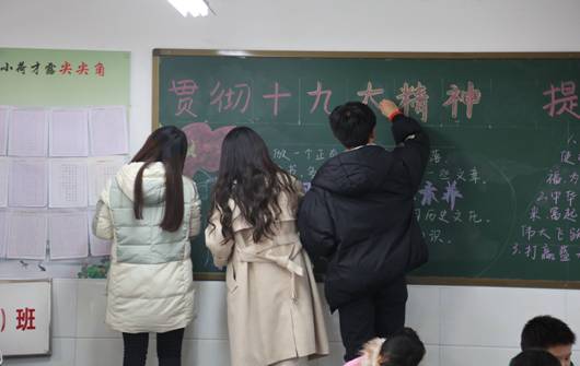 上午11:00,公司在西营小学举办了由伟德bv国际体育官方网站纪委主办,宣传部、组织部、艺术公司党总支承办的 “贯彻落实十九大精神宣传展板联展走进白河”展板联展宣讲活动,四位讲解员为师生为西营镇中心小学师生系统讲解了十九大的主要精神,受到了县教育局领导和西营镇中心小学的师生的好评。美术系、设计系师生深入班级宣传十九大精神,并为班级设计十九大主题黑板报,受到小员工的欢迎。