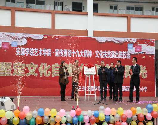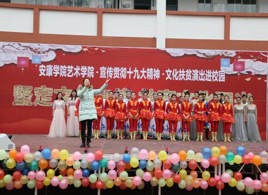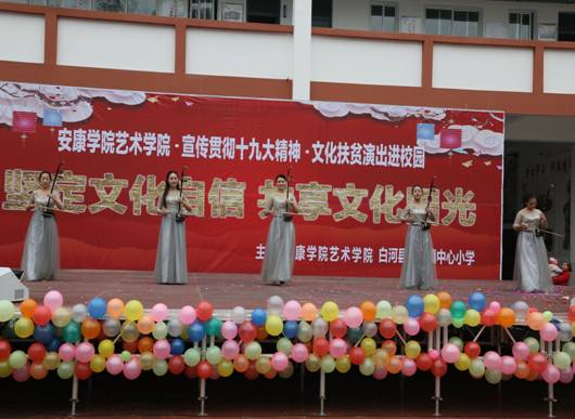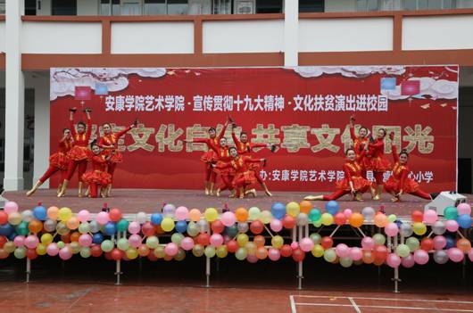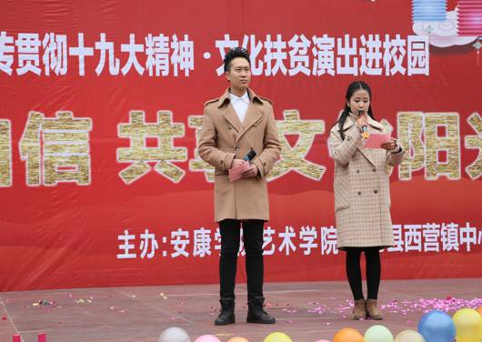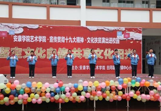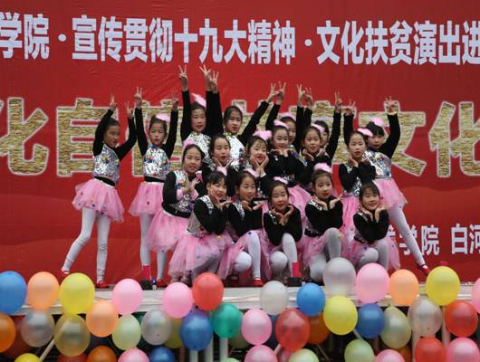12月15日,伟德bv国际体育官方网站70余名师生,赴白河县西营镇中心小学,举办“坚定文化自信,共享文化阳光”为主题的贯彻落实十九大精神、文化扶贫演出进校园”活动。政府督学徐维山、县教育局人事股长黄开国、西营镇党委书记王海波以及2000余名师生、群众参加了活动。