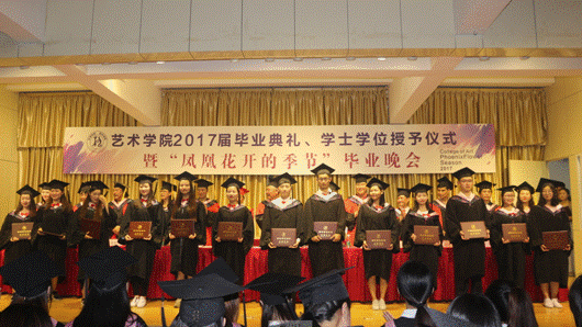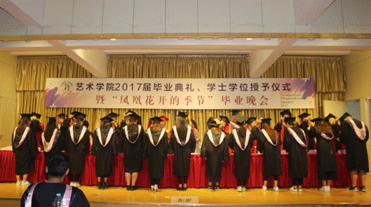 6月27日晚,伟德bv国际体育官方网站“2017届毕业典礼、学士学位授予仪式暨‘凤凰花开的季节’毕业晚会”在江北校区1401演艺厅隆重举行。安康公司党委委员、副董事长钟生海,艺术公司党政领导王辉、雷升录、鲍丽、孙海洋,办学顾问党天才、副高以上职称教师、各系教师代表、辅导员及全体毕业生参加了毕业典礼并观看毕业晚会。毕业典礼由办公室主任肖剑主持。