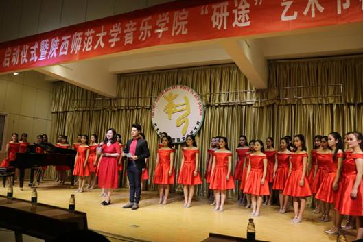 五月是鲜花烂漫的季节,是热情奔放的季节,是活力四射的季节。2016年5月6日晚19:30,公司首届“文化艺术月”启动仪式暨陕西师范大学“乐.研途”艺术节校际交流演出在江北校区1401演艺厅隆重开幕。陕西师范大学音乐公司副经理张新梅教授、伟德bv国际体育官方网站办学顾问党天才教授、陕西师范大学音乐公司团委书记宋娜老师、王靖雯老师以及伟德bv国际体育官方网站领导班子、全体教师莅临了活动现场,启动仪式由艺术公司党总支书记王辉主持。