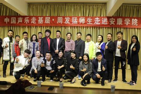 10月10日上午10点,中国海政文工团安康籍著名男高音歌唱家周发猛先生携其员工在我系演艺厅,与我系音乐专业师生进行了声乐演唱交流活动,并结合自己的教学经验,对我系员工进行了现场教学指导。