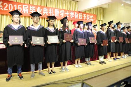 冯丰收书记宣读了公司关于对2015届优秀毕业生表彰决定和我系毕业展演获奖名单;雷升录副主任宣读了伟德bv国际体育官方网站关于对2015届本科毕业生授予学位的决定。接着各位导师为获奖同学们颁发了荣誉证书;为获得学位证书的毕业生颁发学位证书并为各位文艺学学士扶正流苏。今年我系共有267名毕业生,其中本科毕业生237人(235人授予文艺学学士学位),专科30人。
