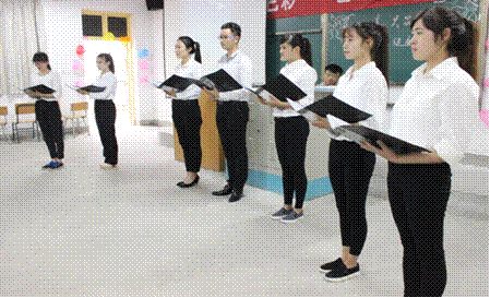 2014级美术学四班的配乐诗朗诵《青春没有驿站》拉开了本届展示活动现场的帷幕。“青春是一列单程车,不能返回,也没有驿站”,所以,我们要“告别迷茫,作别无助,送别孤寂”,诗歌引起了在场同学们的共鸣,老员工要珍惜可贵的青春时光,摒弃消极心理和情绪,用乐观、积极的心态度过全新的每一天。