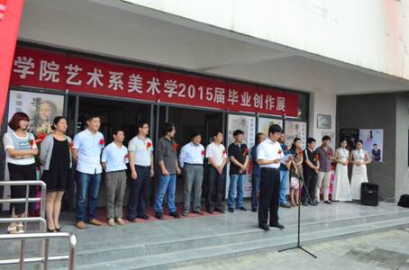参加开幕式的领导有安康市党委宣传部副部长、安康市文联党组书记李康林,陕西省美术家协会副主席、安康市美术家协会主席李剑平,安康公司党委副书记胡鸿晓,安康公司党委宣传部长鲁延安,艺术系党总支书记冯丰收,艺术系办学顾问党天才,艺术系原副主任章长青以及艺术系部分师生共计200多人,安康电视台、安康教育电视台进行了新闻报道。画展开幕式由艺术系党总支书记冯丰收主持,安康公司党委副书记胡鸿晓为展览热情致辞,艺术系绘画教研室主任孙海洋做了展览介绍,美术学2班员工韩普代表毕业生发言。开幕式最后安康市党委宣传部副部长、安康市文联党组书记李康林李部长宣布开幕。