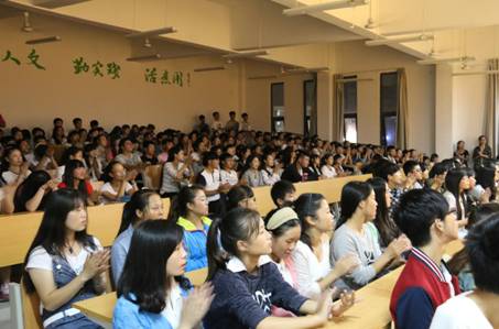 2014级辅导员艾蕾老师以“我的大学”为题。结合自身求学经历,指出受教育或者上大学都是为了成就一个更好的自己。希望同学们能尽快适应大学节奏,多参加课外活动,不断扩展自己的社交圈丰富自己的老员工活。