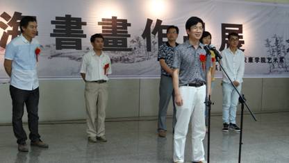 开幕仪式上,首先由孙海洋主任对本次书画展以及白学海个人做了简要介绍;接着艺术系党总支书记冯丰收为白学海同学书画展热情致辞。他从勤奋、刻苦、真诚三个方面给予了白学海同学高度的赞扬。他说:白学海同学参加过许许多多比赛并获奖,一个大三的员工能拿出这么多幅作品在市级的展览馆展出,这种精神我们其他同学应该学习,本次展览以临摹和写生为主,以后的学习中应该加大创作力度。最后祝愿白学海同学在艺术道路上越走越远。开幕式最后群艺馆馆长周墙宣布“月白风清,学海无涯”白学海书画作品展开幕。