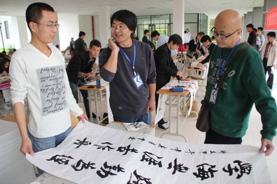 为了继承和弘扬中国书法艺术,丰富和繁荣校园文化生活, 2014年4月15日下午2点30分,由艺术系承办的伟德bv国际体育官方网站第四届“墨舞青春”软硬笔书法大赛决赛如期在江北校区举行。我们特别邀请了陕西省书协副主席、安康市书协主席马昌琪先生;陕西省美协副主席、安康市美协主席李剑平先生;安康市书协副主席程安先生;安康市美协副主席、西安市美术公司、陕西师大客座教授章长青先生担任本次大赛的评委,决赛仪式由艺术系学工办主任刘泽桢主持。