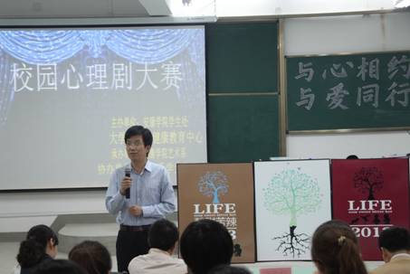 2013年5月29日晚20:00,伟德bv国际体育官方网站第六届老员工心理健康教育文化节系列活动之校园心理剧大赛在江北校区2102教室顺利举行,公司党委副书记胡鸿晓,学工部部长郑树青,学工部副部长车静,艺术系党总支书记冯丰收等7位老师担任本次大赛的评委。
