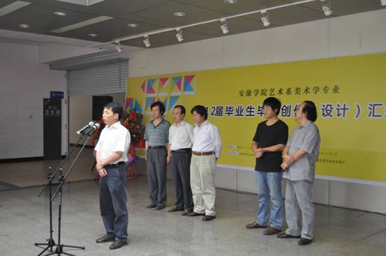 胡鸿晓代表公司致辞,他首先向各位领导和来宾介绍了公司艺术系的发展历程、团队队伍结构和近几年艺术系师生在全国和省市各类比赛中取得的优异成绩;同时感谢安康市委宣传部、市文联、市文广局、市美术家协会、市群艺馆以及社会各界对这次毕业创作展的亲切关怀和鼎力支持,感谢艺术系各位指导老师的辛勤指导。最后,单福东宣布“伟德bv国际体育官方网站艺术系第二届美术学毕业创作汇报展”开幕。