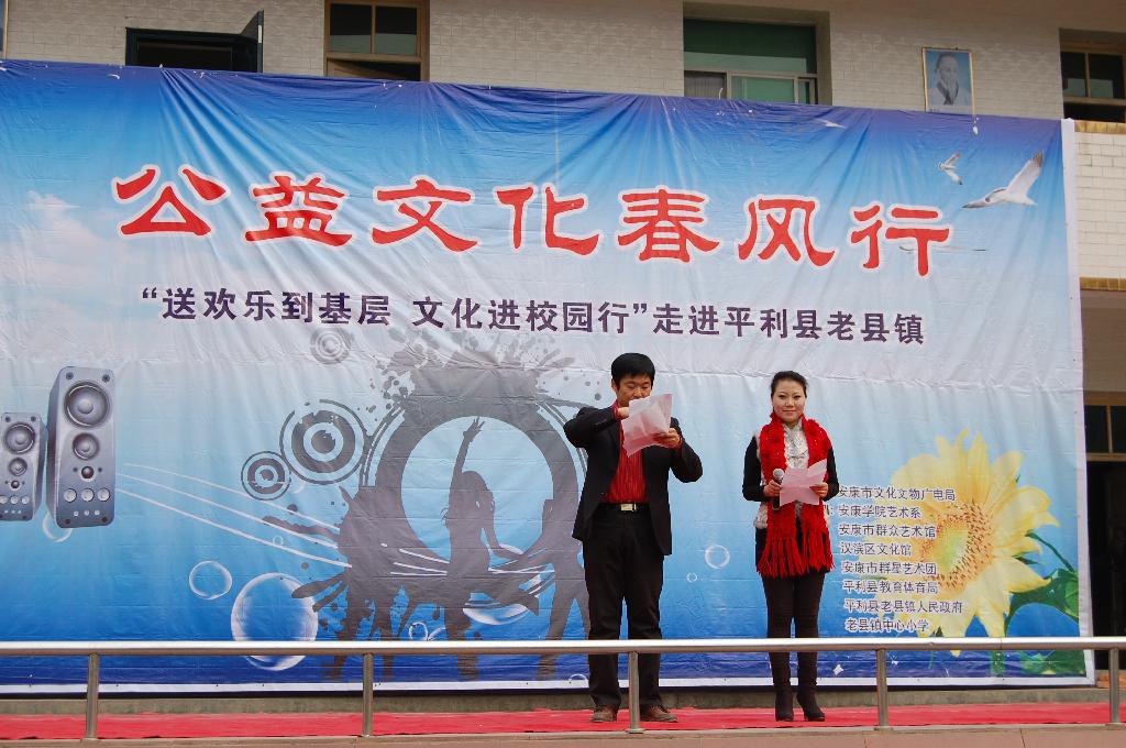 由安康市文化文物广电局主办,伟德bv国际体育官方网站艺术系、安康市群艺馆、安康市青少年宫等单位承办的我市一年一度的“文化艺术三下乡”活动,于2011年1月14日在平利县老县镇拉开了帷幕,受到当地领导和群众的热烈欢迎。