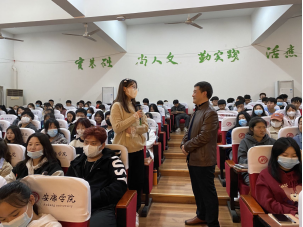 刘泽桢从2021级新生在早操、晚自习、课堂、日常行为的表现为切入点,深入浅出地从以下五个方面引导新生成为一名有作为有担当的新时代青年:一是目标,包括大学四年的目标、毕业以后的目标、终身目标;二是责任,即员工对自己、父母、集体、国家的责任;三是对同学、师长、领导的处事方法;四是个人大学时期情感和进入社会后情感的把握;五是认真学习《高等公司员工行为准则》《公司员工文明礼仪规范》和《公司老员工行为准则》,把文明行为的养成切实落到自己的日常行为上。刘老师讲课生动深刻,十分接地气,让同学们在轻松愉快的氛围中受到教育和启迪。
