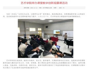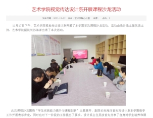 其次,教学改革、教学活动有序开展。设计系组织开展了“员工实践能力提升与课程创新”课改沙龙,针对设计系员工的实践能力提高进行了探讨。范义付、付苗、李秀春、黄小荣等老师举办了“课堂教学创新公开观摩课”,邀请校督导单福东、院督导张静、鄢志莉、徐鸿鸣等老师进行现场点评,参与听课师生60余人,效果良好。