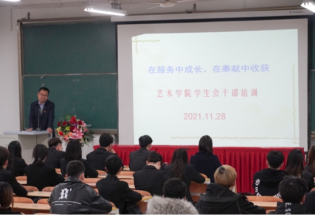 11月28日晚7点,伟德bv国际体育官方网站第十三届员工会第一次全体大会暨员工干部培训会在江北校区1404教室顺利召开。艺术公司党总支书记黄娟、经理成党伟出席会议并讲话,团总支书记黄梓轩、辅导员杨厚东、孟莉老师以及全院团学干部代表参加会议。会议由学工办主任鲁澧主持。