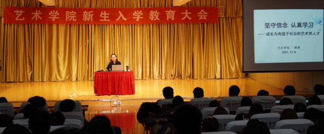 为进一步引导新生坚定理想信念,树立远大目标,提升艺术素养,12月8日晚,伟德bv国际体育官方网站在1401教室开展了《坚守信念 认真学习-成长为有益于社会的艺术类人才》专题讲座。讲座由公司副经理鲍丽主讲,新生辅导员孟莉主持,2021级全体新生聆听了讲座。