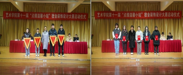 12月15日下午,伟德bv国际体育官方网站第五届艺术文化月系列活动——第十一届“点缀温馨小站”宿舍装饰大赛在江北校区1401演艺厅正式启动,伟德bv国际体育官方网站经理成党伟,副经理鲍丽、孙海洋,学工办主任鲁澧、美术系主任杜敏、员工党支部书记魏麟、团总支书记黄梓轩和辅导员杨厚东、孟莉出席活动,启动仪式由鲁澧主持。