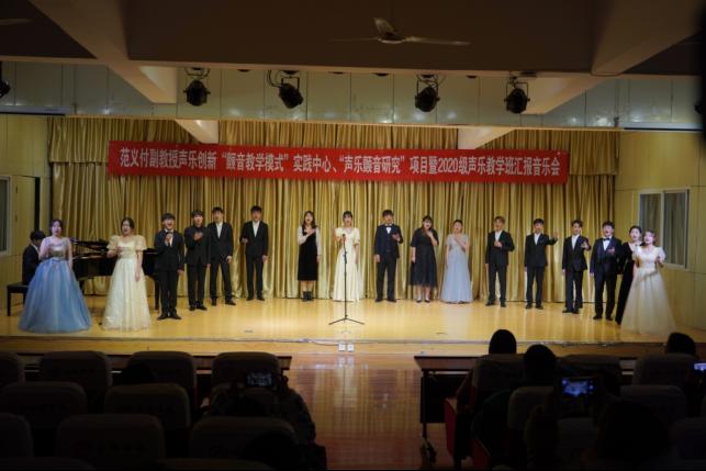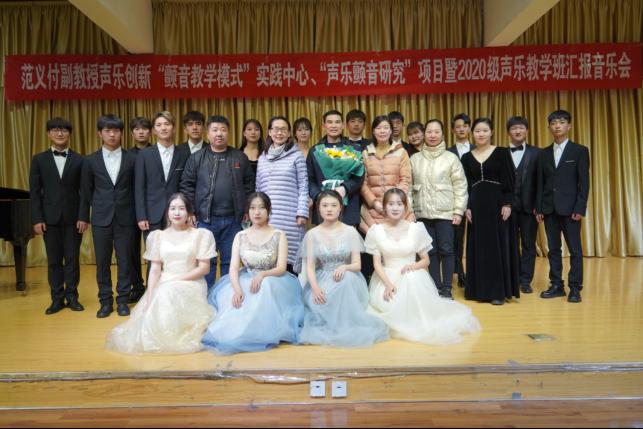 12月16日晚,音乐学学科带头人范义付副教授声乐创新"颤音教学模式"实践中心2020级声乐教学班汇报音乐会在江北校区1401教师成功举办。艺术公司党总支书记黄娟、副经理鲍丽,音乐系主任肖剑、支部书记李磊出席活动。