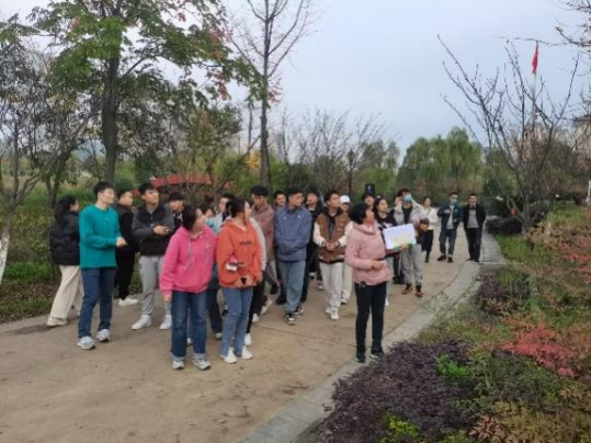 现场教学在江北校区进行。杨湘涛老师以江北校区1、2号教学楼与滨湖景区之间的植物景观配置为主题,讲解和启发员工学习景观植物在造景中的应用,根据课程特点植入课程思政主题——审美素养与文化自信。